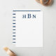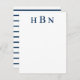 Das zeitlose und elegante Design einer benutzerdefinierten Notenkarte bietet marineblaue Buchstaben, die mit den Initialen des ersten, des letzten und des mittleren Namens im klassischen Serifentyp personalisiert werden können. Der Platz für Ihre handgeschriebene Notiz ist inbegriffen und die Rückseite der Karte weist ein hübsches Muster horizontaler, blau-weißer Streifen auf.