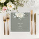 This elegant design features watercolor ivory flowers with lush green foliage on an olive green background. Personalize with your own details.