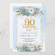 Classic pastel blue gold script 90th birthday einladung