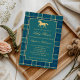 Eine prächtige, klassische Babydusche mit Reittieren und karierten Elementen in Marine- und Jägergrün mit goldenen Tonakzenten. Eine Laufpferde-Silhouette schmückt die Oberseite und das Tartan-Muster verleiht eine zeitlose Touch. Ideal für eine Babydusche im Alten Geld-Stil mit einem klassischen, Vintagen und luxuriösen Ambiente. Wenn Sie Großvater-Kern mögen, Vintager Stil, ist dies eine tolle Babydusche einladen. Erhältlich in Print und als digitaler Download. Passen Sie diese bearbeitbare Babydusche-Einladung mit Ihren eigenen Veranstaltungsdetails an.