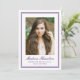 Commemorate your graduate’s achievement with this elegant photo graduation party invitation, featuring a traditional purple double border that adds a refined and distinguished touch. The front showcases the graduate’s portrait alongside their name and school in a timeless layout. On the back, a horizontal photo adds a personal element, with party details presented below for a cohesive and complete design. Suitable for both high school and college graduates, this purple graduation party invitation offers a beautiful and memorable way to invite guests to celebrate their success.