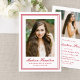 Mark this special occasion with a bold red photo graduation party invitation, designed with a classic double line frame that adds clarity and visual definition. The graduate’s portrait is prominently featured on the front, accompanied by their name and school in a timeless typographic arrangement. On the back, a horizontal photo adds a personal touch, with graduation party details displayed beneath for a complete and thoughtfully organized invitation. Suitable for both high school and college graduates, this red graduation party invitation offers a confident and memorable way to invite guests to celebrate their milestone.