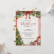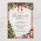 This classic Christmas invitation features festive red ribbons, gold ornaments, lush greenery, and a beautifully decorated Christmas tree. The warm, traditional color palette brings nostalgic holiday charm to any gathering. Ideal for timeless Christmas parties with a cheerful, vibrant seasonal style.
