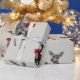 Featuring hand-drawn black and white deer illustrations adorned with bright red bows, this neutral holiday design blends rustic elegance with a festive spirit. The soft beige-gray background creates a modern, timeless look — perfect for woodland, farmhouse, or Scandinavian-style Christmas decor.