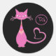 Classic Retro Pink Kitty Cat Schwanz Monogramm Runder Aufkleber