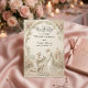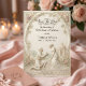 Announce your formal estate union with a romantic neo-classical design featuring a proposal scene and soft botanical accents in a timeless monochrome palette.This design features a highly detailed digital illustration simulating a 3D bas-relief stone carving. The central image depicts a romantic engagement scene where a gentleman kneels to propose to a lady in a flowing gown, set within a classical rotunda temple architecture. The "carved" stone elements are rendered in shades of beige, cream, and warm grey, contrasted by flat-printed pastel pink and peach roses with muted sage green leaves climbing the arched frame. The typography combines an elegant, ornate black calligraphy script for names with a traditional serif font for the details.This is a flat printed image with a Faux Stone Embossed effect, not actual raised material or textured paper.
