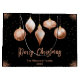 Celebrate the season in style with this elegant black Christmas gift bag featuring five rose gold hanging ornaments, scattered golden stars, and customizable text. Add your family name and year for a personal touch that elevates any holiday gift. Perfect for festive packaging, party favors, or under-the-tree presentation.