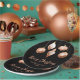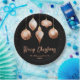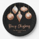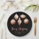 Celebrate the season with striking sophistication. This rose gold Christmas party plate features five hanging ornaments - each uniquely styled with glittering stars, snowflakes, florals, and harlequin patterns. Set against a deep black background with golden sparkles, it brings a luxurious, modern twist to your holiday table. Perfect for festive gatherings, office parties, or upscale winter events.