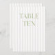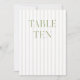 Diese elegante Tischnummer besticht durch einen zarten, beige gestreiften Hintergrund mit raffinierter, von Weiß grüner Serifentypografie und subtilen Schriftzeichen geprägten Akzenten. Entworfen für Gartenhochzeiten, raffinierte Empfänge und zeitlose Feiern im Freien. Koordiniert mit der "Iris" Wedding Invitation Collection — klicken Sie auf den Link Sammlung auf dieser Seite, um passende Artikel wie Menüs, Einladungen, Beschilderungen und vieles mehr zu finden. Bitte beachten Sie, dass diese Vorlage nicht bearbeitet werden kann. Um weitere Tischnummern in dieser Serie zu finden, besuchen Sie die komplette Sammlung Seite. ・ Für dieses Design wurden Mockups mit Midtravel AI erstellt.