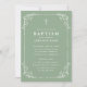 Classic Sage Green Dainty Floral Frame Baptism Einladung