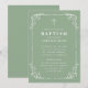 Classic, traditional and formal baptism invitation in sage green with a dainty Baby's Breath floral frame and cross.