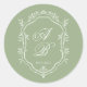 Classic Sage Green & White Monogram Crest Wedding Runder Aufkleber