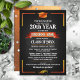 Große Wiedersehen-Einladungen in den Schulfarben Schwarz und Orange, die Sie mit all Ihren Festdetails für Ihre große Wiedersehen Veranstaltung personalisieren. Dieses Design bietet einen reichen Hintergrund mit goldenen Eckakzenten und einem goldenen Graduierungspapier und -tasle, die an die Veranstaltungsdetails grenzen. Ihr Schulname wird auf einem goldenen Banner direkt in der Mitte deutlich hervorgehoben.