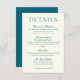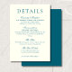 Classic Teal Blue Minimalist Wedding Details Begleitkarte