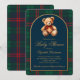 Classic Teddy Bear Navy Plaid Baby Shower Invitation | Elegant Winter Baby Shower