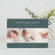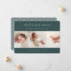 Die elegante und klassische Geburtsankündigung besteht aus drei Fotos, die auf einem geschlechtsneutralen Waldhintergrund angeordnet sind. Personalisieren Sie sich mit dem Namen des Babys, den Geburtsstatistiken und Ihrer Familiensignatur in knackiger weißer Schrift.