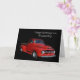 Eine Geburtstagskarte für einen Vater, der alte LKWs mag, mit einem Foto eines alten roten LKW auf schwarzem Hintergrund.