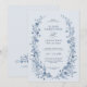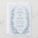 This elegant botanical winter wedding invitation features soft dusty blue florals arranged in a delicate wreath, creating a timeless and romantic look. Inspired by vintage botanical illustrations and icy winter tones, this classic design is perfect for winter weddings, formal celebrations, and elegant seasonal ceremonies. The refined typography pairs beautifully with the cool blue palette, making it ideal for traditional, garden-inspired, or vintage winter weddings. Easily personalize with your wedding details for a polished and sophisticated invitation your guests will love.