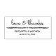 Diese wunderschöne Gummi-Briefmarke mit Weinrebe, die die Worte "Liebe & Dank" im modernen Kalligraphie-Schriftart-Stil und Details im modernen sans-serif-Schriftart-Stil unterstreicht. Ideal für Hochzeiten, Babydusche, Geburtstagsparty, Brautparty und alle besondere Anlässe.