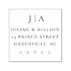 Eine klassische Rücksendeadresse-Briefmarke mit Paaren, die zunächst Monogramm und gestapelte Schriften haben. Ideal für geschäftliche oder private Zwecke.