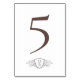 The minimalist background allows the table number to stand out clearly for guests while the crest detail adds a timeless decorative element that ties beautifully into a coordinated wedding stationery suite. This design blends classic typography with subtle ornamental accents, making it perfect for elegant receptions, ballroom celebrations, and modern classic weddings.
