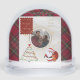 Add festive charm to your holidays with this personalized Christmas photo Snow Globe. A hand drawn Christmas tree, a joyful Santa, reindeer, golden snowflakes, and a cozy red plaid border. The classic whimsical Christmas style blends cheerful color with traditional warmth, creating a joyful design for your holiday decor. Personalized gilt by you.
