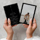A timeless black-and-white wedding invitation with a minimalist layout, classic serif fonts, and elegant white typography on a deep black background. Perfect for couples who love clean lines, monochrome aesthetics, and understated sophistication. The vertical format adds a refined, formal touch while still feeling fresh and contemporary.
