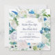 Diese klassische, weiße Blume Platz Hochzeit Einladung ist perfekt für eine Frühjahrshochzeit. Das elegante Blumendesign mit Elfenbein und Weiß Rose, Peony und Chrysanthemum mit Touchs von periwinkelblauen Aquarellfarben und grünem Blattwerk.