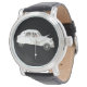 Uhr, Klassische Damenuhr mit schwarzen Lederarmband