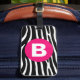 Trendy black and white animal print with bold pink monogram in center.