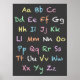 Ein Poster für das Klassenzimmer. Es enthält das Groß- und Kleinalphabet in einem handgeschriebenen Kreide-Schriftart. Die Buchstaben erscheinen in verschiedenen Pastellfarben und Weiß.