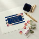 Classrosa Floral Gold Navy Blue Stripes Adressaufkleber