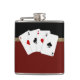 Klassischer Rot-, Schwarz- und Goldhintergrund und vier Asse Poker Flasche. Sie können die Poker-Karten verschieben, neu formatieren und löschen. Dieses Poker- und Glücksspielflasken-Design funktioniert gut für ein Mans Geburtstagsgeschenk, Trauzeuge Geschenk, Bräutigam oder alle Glücksspiel-und Poker-Fan!