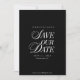 This classy elegant save the date card in black and white features a minimalist design with "save our date" styled in a mixture of classic text and elegant calligraphy script that lends a sophisticated, classy style with old money vibes. The design also features a place to add your photo that covers the entire back of the card.