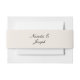 A very elegant and unique black and cream classy background and old money wedding belly band. That matches the whole french Parisian font script wedding suite theme vibe. As you see it has a luxury black old money style bride and groom's names standing in the middle. With whimsical "and" that adds a stylish outlook.
