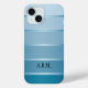 Stilvolle Telefonzelle mit blauem ton sur ton mit silber gestreiftem Design mit eigenem Text oder Monogramm.