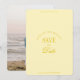 This classy, elegant save the date card in butter yellow features a minimalist design with "save the date" styled with a mixture of classic text and elegant calligraphy script that lends a sophisticated, classy vibe. The design also features a place to add your photo that covers the entire back of the card.