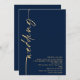 Classy Calligraphy QR Code Navy Gold Wedding Einladung