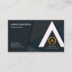 In einem dunkelblauen Hintergrund weist das Design ein atemberaubendes weißes Dreieck mit einem klassischen geometrischen Muster auf. Dieses Dreieck ist eine Pfeilspitze, die auf den Erfolg zeigt. Es ähnelt auch dem Alphabet A. Daher kommt das Design auch denjenigen zugute, deren Name oder Firma mit diesem Alphabet beginnt. In dieser Pfeilspitze finden Sie Ihr elegantes Goldlogo und Ihren Firmennamen für Imitate. An der links Mauer steht Ihr Prestigename und Jobtitel ganz oben. Die Kontaktdaten befinden sich in der Nähe der Kartenbasis.