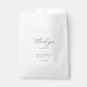 Diese eleganten minimalistischen Dankestaschen aus der Gastgeschenk Hochzeit sind perfekt für eine rustikale Hochzeit. Passen Sie die Leckerei-Taschen mit einer kurzen Dankesnachricht an, einschließlich Ihrer Namen und des Datums. Nutzen Sie diese Leckerei-Taschen, um einen Hochzeitsempfang, Brautparty, jede Veranstaltung oder Party zu ergänzen. Das einfache und elegante Design zeichnet sich durch klassische und extravagante Schriftzeichen in Schwarz und Weiß aus.