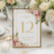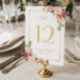 Classy Chic Pink Floral Gold Hochzeit Tischnummer