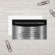 Cool modern construction service business cards created with a silver tone digitally printed background graphic that mimics the look of metal and classic layout you can personalize for any construction contractor, aluminum company or recycling.