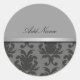 Klassische Monogramm-Aufkleber mit stylisch grauem Damast-Muster, eine Hintergrundfarbe, die Sie anpassen können, zusammen mit dem metalgedruckten Akzent-Divider und dem monogrammatischen Namensraum, den Sie mit jedem Namen oder Initialen personalisieren können. Perfekt als Aufkleber oder Etiketten für Dankeschön, Party, Geschenketiketten oder Namensschilder.
