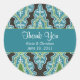 Classy Damask Turquoise Danke Labels Runder Aufkleber