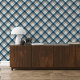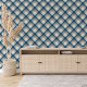 Das Design präsentiert ein zeitgenössisches, kariertes Muster in dunkelblauen, bunten, beigen und grauen Farbtönen. Es strahlt zeitlose Eleganz und Stil aus und verkörpert den Geist des modernen Designs. Es ist perfekt für Künstler, Dekorateure und Modebewusste geeignet und verbindet den Reiz des Vintagen Charmes mit der raffinierten Einfachheit. Dieses anpassungsfähige, stilvolle und raffinierte Muster zeichnet sich durch eine Reihe moderner Wohngestaltungen aus, die sich ideal für die Gestaltung von Bereichen wie einem Master- oder Gästezimmer, einem Retro-Büro, einem Wohnzimmer oder einem Familienzimmer eignen.