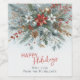 This wine bottle label is distinguished by its elegant and unique design. It features a classic "Happy Holidays" greeting that can be customized to your preference. The label is adorned with a beautiful pattern of dark teal blue, white, and maroon red wreaths. This sticker is a stylish way to enhance your Christmas wine bottles, making them a wonderful surprise for your friends and family.