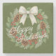 Dieser wunderschön gestaltete Untersetzer aus Urlaubsteinen zeigt ein elegantes Aquarellbild eines Kranzes mit weißem Bogen, Nadelkronen, grünen heiligen Blätter, roten Beeren und Kiefernnadeln. Das elegante und dennoch rustikale Design spiegelt das Wesen der Dezember-Urlaubssaison wider und spricht alle an, die künstlerische Illustrationen schätzen. Der Untersetzer bietet Ihnen die Möglichkeit, Ihre Wünsche anzupassen, sodass Sie sie mit Ihrem saisonalen Gruß personalisieren können. Das macht ihn zu einer wohlüberlegten Wahl, um den Feiertag zu verbringen.