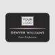 Black, elegant name tag with your name, title and custom logo. Your name and logo are separated by a golden color gradient divider (not real foil). You can change background color and fonts, move and resize the logo and other elements with the design tool.