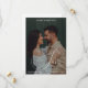 Announce your celebration with refined style using this classy and elegant black and white photo design. Showcasing a full-bleed photograph paired with graceful script lettering, this modern yet timeless layout highlights your love story in a clean, sophisticated way. The monochrome palette adds a touch of luxury while keeping the focus on your special moment. Perfect for couples who appreciate understated elegance and contemporary design, this customizable piece allows you to personalize names, date, and location for a polished and memorable announcement.