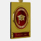 Präsentieren Sie Ihren Lieblings-Absolventen mit einem Sake, den er oder sie für Jahre schätze, um mit diesem eleganten und klassischen dunkelrot-goldfarbenen Tonabschlusskappendesign zu kommen, das die Schule, das Unterrichtsjahr und den Namen Ihres Absolventen enthält. Originelles Design von Holiday Hearts Designs (alle Rechte vorbehalten).